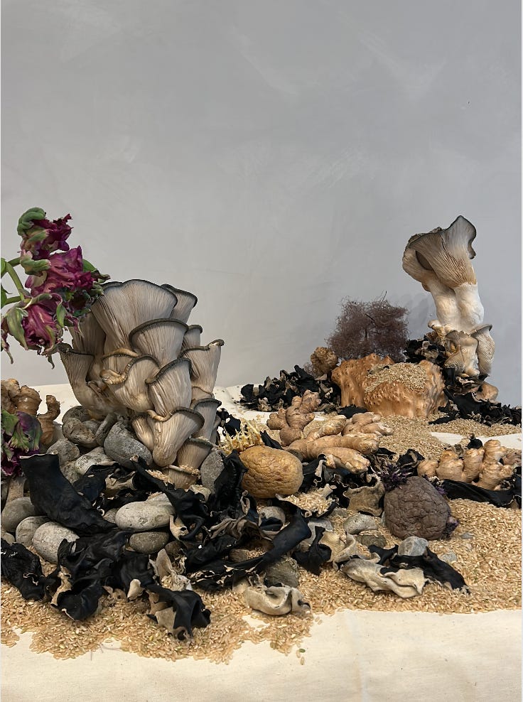 Clarence: For the theme of Maps, I was inspired by my breakout room conversations around things that guide us when we feel lost. Living away from my family, Chinese food is my way to stay connected to home. To express that feeling, I collaborated with a floral artist, Sylvia Cheng, (@growingtkaronto) to create a photo story showcasing landscapes made out of Chinese ingredients